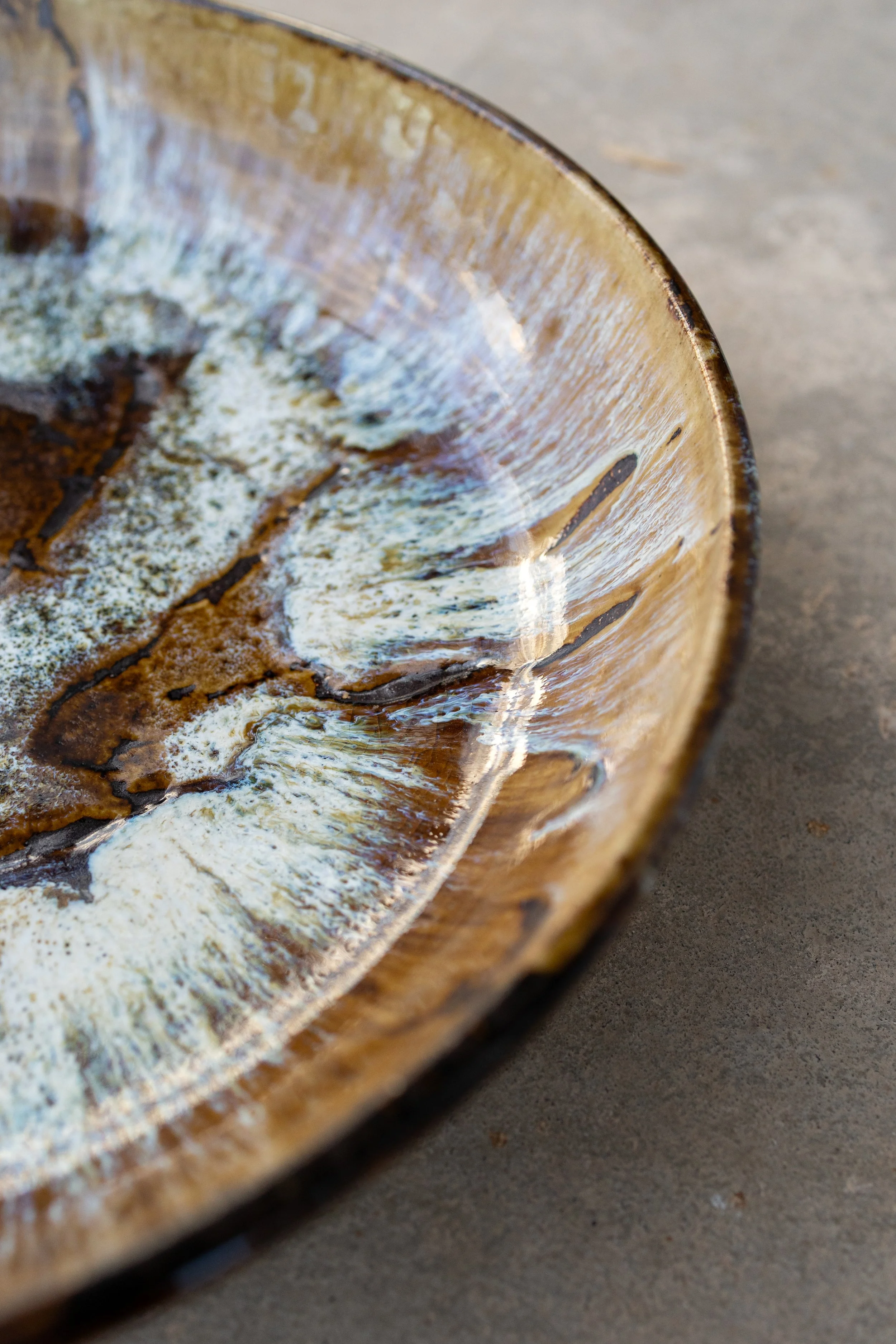 The Numoku Platter is a statement in quiet form. Hand-thrown and shaped with intention, its wide surface showcases the depth and movement of the glaze—each firing creating something entirely its own. Designed for gathering, serving, or simply existing as a piece of art, it brings a grounded, natural presence to any space.