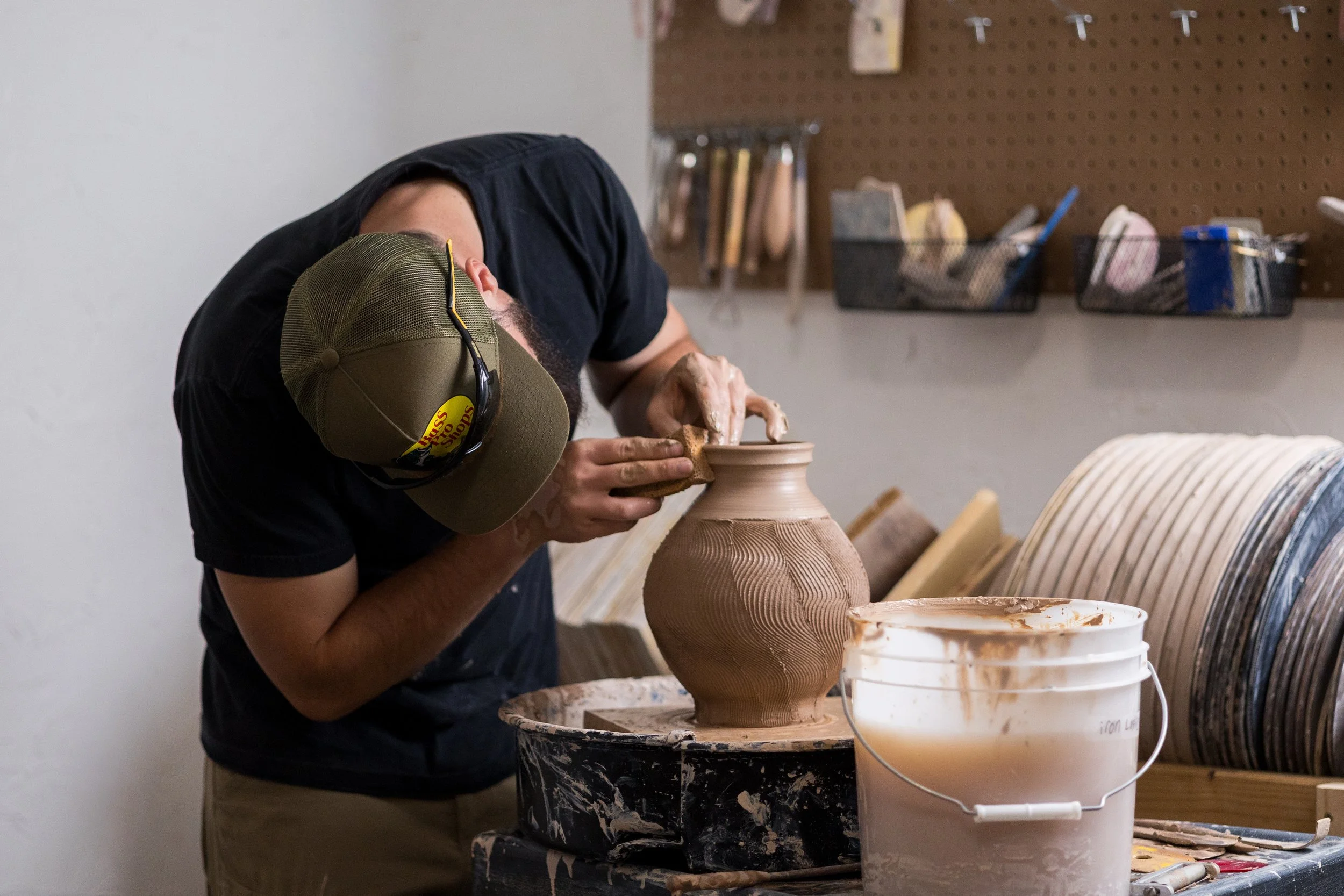 I’m a potter and builder based in northern Utah, working out of my studio in Logan where the mountains and long winters shape the rhythm of my days. I first discovered pottery in high school and was immediately drawn to the steady cadence of the wheel—the way a simple lump of clay can be transformed into something both beautiful and useful. That early fascination eventually led me to study ceramics at Utah State University, where I deepened my understanding of form, glaze chemistry, and atmospheric firing.